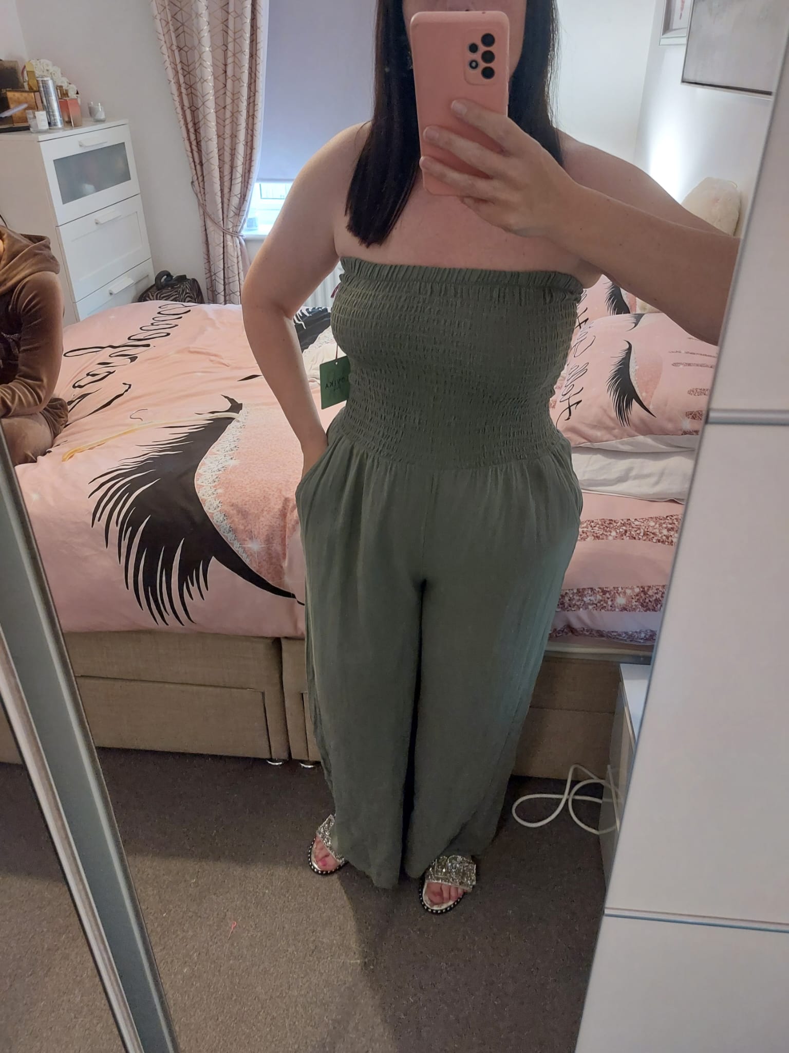 Khaki Strapless Jumpsuit