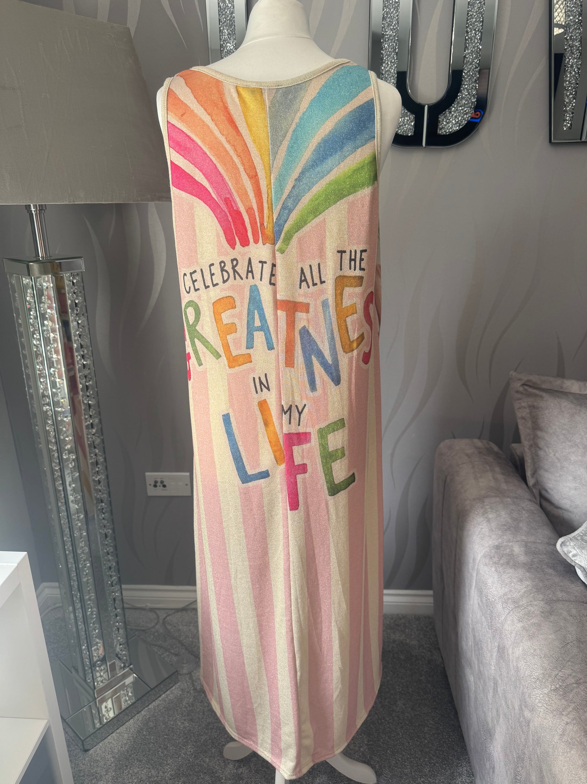 Welcoming our quirky Miami maxi dress perfect for the summer. If you love quirky fashion then this is the dress for you. This is one size 8-16.
