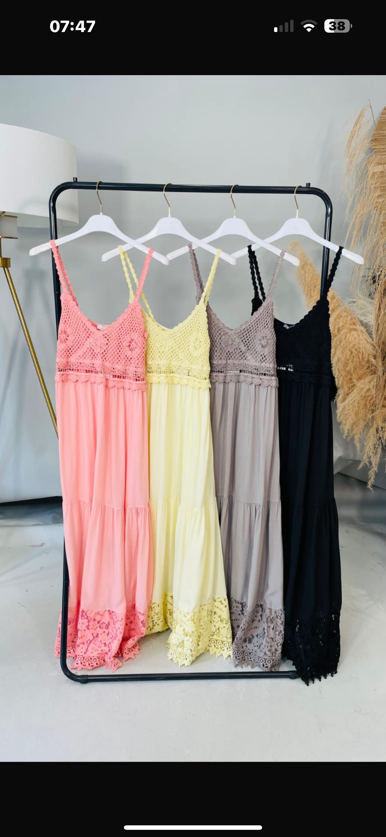 Introducing our stunning Rebecca crochet maxi dress perfect for the summer, comes fully lined. This is one size from an 8-14.