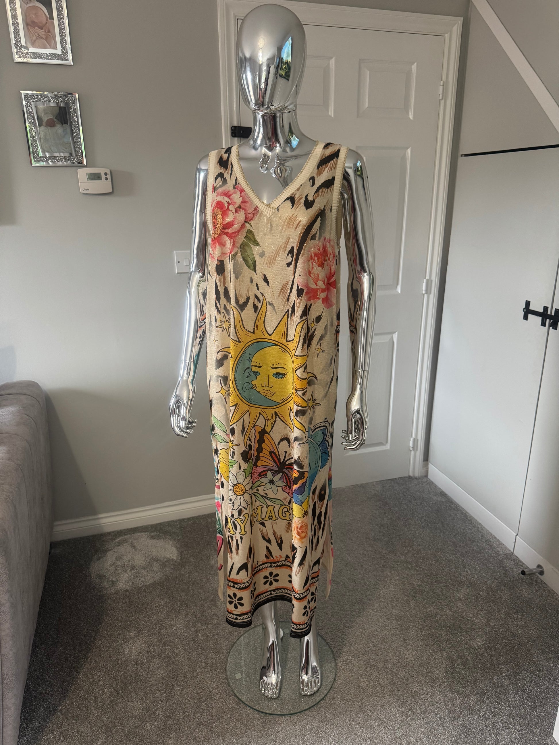 Introducing our stunning sun and moon dress perfect for the summer. This is one size from an 8-14.
