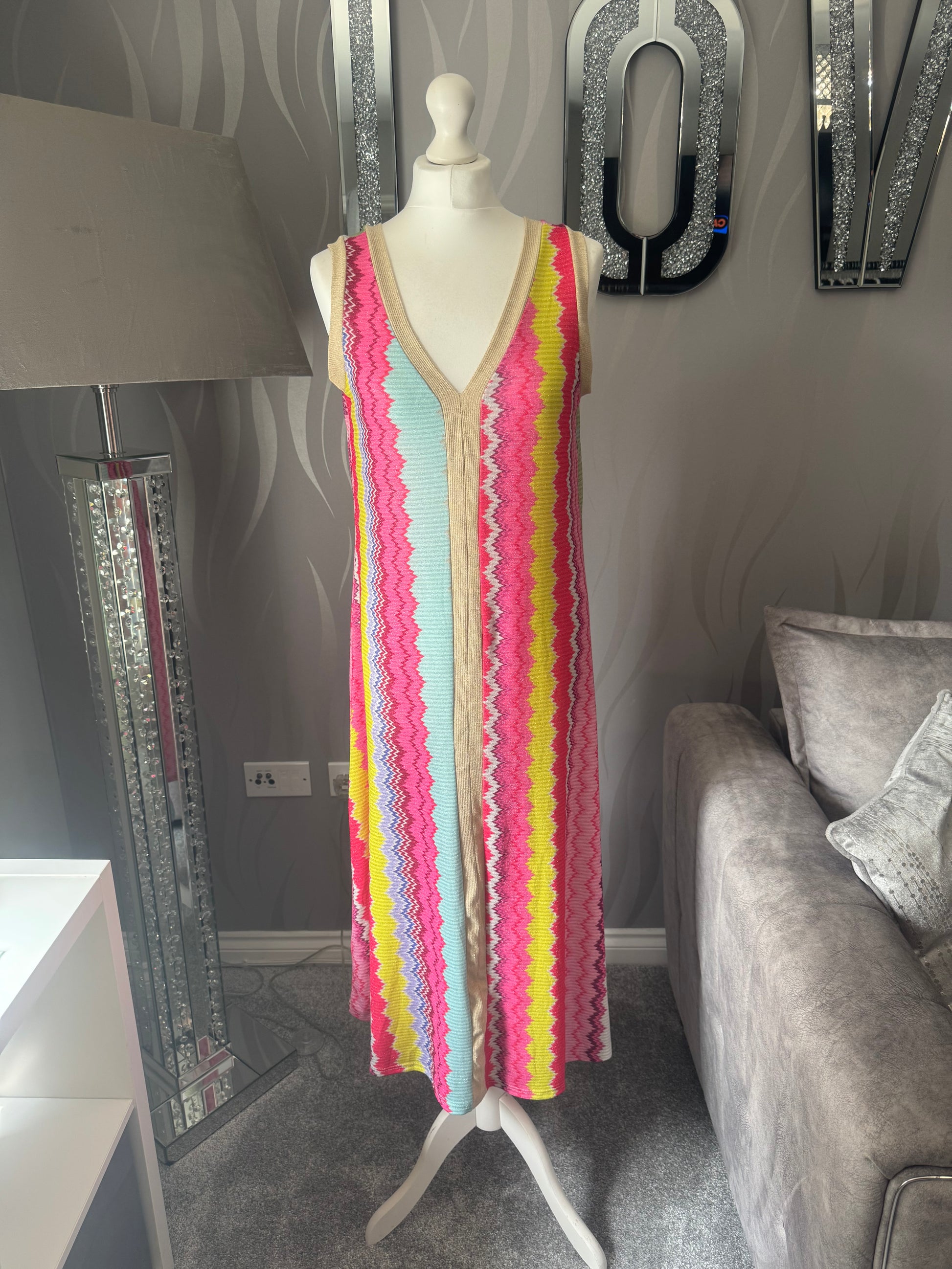 Welcoming our stunning zigzag lurex maxi length dress. This is perfect for all occasions. This is one size from an 8-16.